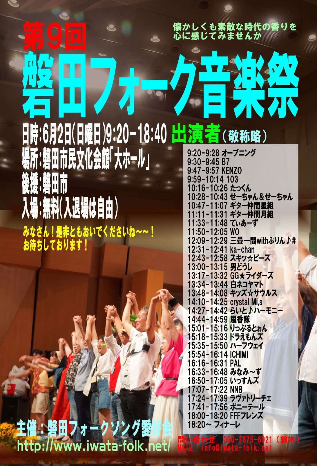 第9回磐田フォーク音楽祭 出演者のみなさん 6月2日(日)